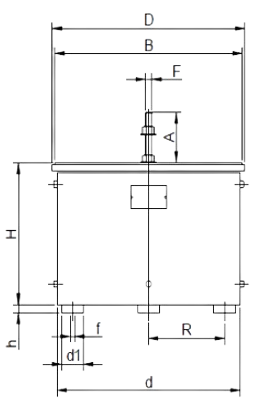 | Modelo | C/min. | D | d | H | h | H+h | R | d1 | A | B | f | Pies | F | Peso | Bobinas | Acción | Consumo |